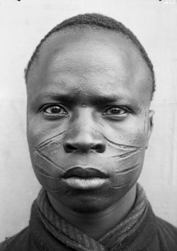 Andere Porträtfotografien, die als Abzüge vorliegen, zeigen ebenfalls gefangene Kolonialsoldaten, allerdings vor einem gemalten Hintergrund.