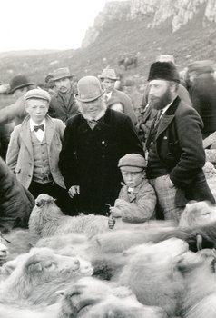 Sigfús Eymundsson: Schafabtrieb (Réttir) in der Nähe von Akranes, Island, 1897 (Ausschnitt).