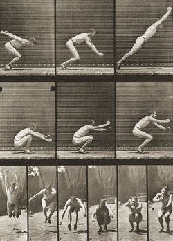 Dass es zwischen den beiden Medien schon vor den apparativen Konvergenzen, die für die Gegenwart zu beobachten sind, in unterschiedlichen Zusammenhängen Übergangsformen, fließende Grenzen und funktionale Überlagerungen gab, bildet über die wechselnden Gegenstände und thematischen Schwerpunkte hinweg den gemeinsamen Fokus der in diesem Heft versammelten Beiträge. Lange bevor sie in webbasierten Multimediaessays und musealen Installationen zu einem Bildschirmmedium wurde, bewegte sich die Fotografie frei in den unterschiedlichsten Publikationskontexten. So führt Nico de Klerk vor, wie Colin Ross in den 1920er Jahren seine auf Reisen entstandenen Filmaufnahmen in fotografische Buchpublikationen überführte. Wirtschaftlichen Überlegungen folgt auch die fotografische Bildproduktion der Filmfirma Triangle, die, wie Marc Vernet nachweist, fotografische Serien benutzt, um stellvertretend die Filme bei Verleihfirmen zu bewerben.[6] Laurent Guido wiederum untersucht anhand von Bildern des Sprungs, wie im ausgehenden 19. und beginnenden 20. Jahrhundert in Zeitlupenfilmen und der chronofotografischen Zergliederung von Bewegungsabläufen im Grenzbereich von stillgestellten und bewegten Bildern Bewegungskonzepte reflektiert werden.[7] Mein eigener Beitrag schließlich zeichnet anhand von Robert Franks autobiografischen Arbeiten nach, wie in der Auseinandersetzung mit der eigenen Lebensgeschichte die überkommene zeitliche Zuordnung von Film und Fotografie aufgebrochen wird und deren Unterschied in einem Prozess der fortwährenden Retransformation von Bildmaterial im Durchgang durch Filme und fotografische Buchpublikationen zunehmend in den Hintergrund tritt.