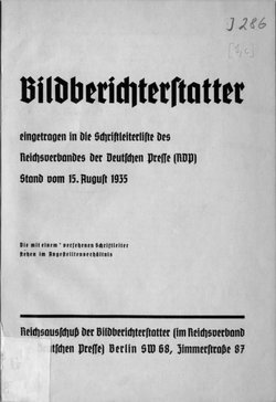 So hatte Goebbels Ende 1932 Fotografen und Fotoagenturen zu einer Versammlung eingeladen, um zu eruieren, wer die Personen in der Pressefotografie waren und wie sie unter die Kontrolle der NSDAP gebracht werden könnten. Die Schilderungen von Rolf Peter Petersen, der für die »Dephot« tätig war, besagen, dass er im Herbst 1932 brieflich eine persönliche Einladung zu einer von Goebbels initiierten Versammlung bekam, an der dann 12 bis 15 Personen teilnahmen, u.a. Erich Stenger und Erna Lendvai-Dircksen. Das Einleitungsreferat hielt Heiner Kurzbein, der 1933 Leiter des »Referats Bildpresse« im Propagandaministerium wurde.[9] Vergleichsweise war die Versammlung nur ein kleiner Kreis, denn Petersen hatte noch vor der Machtübernahme versucht, eine »Interessengemeinschaft der Bildberichterstatter« zu gründen und dafür einen Aufruf an etwa 50 „Bildjournalisten der besseren Klasse“[10] verbreitet. Die Gemeinschaft hat außer wohlwollenden Bekundungen allerdings keine Aktivität entwickelt und ist auch nie durch Eintragung in das Vereinsregister institutionalisiert worden. Die Namenslisten sind hingegen den Nationalsozialisten bei der Schließung des Dephot-Büros im November 1933 in die Hände gefallen.[11]