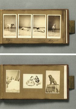 Die Rolle von Frauen in der Gestaltung von Fotoalben im 19. Jahrhundert ist in der (feministischen) Fotografieforschung inzwischen gut aufgearbeitet. Weniger erforscht ist hingegen die Frage, inwiefern umgekehrt Fotoalben neue Schlaglichter auf die historischen Frauenbilder zu werfen vermögen. Nichts geringeres hat sich die im Kölner Museum Ludwig gezeigte und von einem Beiheft begleitete Ausstellung Sisi privat. Die Fotoalben der Kaiserin zum Ziel gesetzt: anhand der privaten Fotoalben von Elisabeth von Österreich-Ungarn einen „neuen Zugang zur historischen Figur“ zu eröffnen (S. 2). Das konkrete Material, das hier dem insbesondere durch Ernst Marischkas Film-Trilogie der 1950er Jahre geprägten kulturellen Gedächtnis entgegengesetzt wird, besteht aus Carte de Visite-Fotoalben, die in der 1990er Jahren als Teil der Sammlung Robert Lebeck ins Museum Ludwig gelangten. Dabei handelt es sich um 18 (von insgesamt 39 bekannten) Fotoalben, die von der Kaiserin zwischen 1862 und 1864, also der ersten Blütezeit der auf Carte de Visite-Format normierten Fotoalben, angelegt wurden. Ihre Beschäftigung mit Alben – und sinnbildlich die Rolle der Frauen in der Fotoalben-Tradition des 19. Jahrhunderts – wird auf einer eigens für die Ausstellung angekauften Carte de Visite-Fotografie (siehe Cover) inszeniert, wo die junge Kaiserin inmitten einer montierten Familienidylle ein aufgeschlagenes Fotoalbum vor sich auf dem Tisch durchblättert. Das Querformat des abgebildeten Albums ähnelt der Mehrzahl der tatsächlichen Sisi-Alben, in denen meist drei Carte de Visite-Bilder nebeneinander eingeklebt wurden. Vier weitere Bände sind typische Einsteckalben, von denen drei sogenannte „Schönheitenalben“ darstellen, in denen Elisabeth ausschließlich Frauenporträts versammelte, die sie sich auf diplomatischen Wegen aus aller Welt zusenden ließ. Die insgesamt ca. 2.000 Fotografien in den 18 Alben bestehen überwiegend aus Porträts der Familie, Adeligen und Schauspielerinnen; aber auch Tieraufnahmen und Kunstreproduktionen wurden gesammelt.