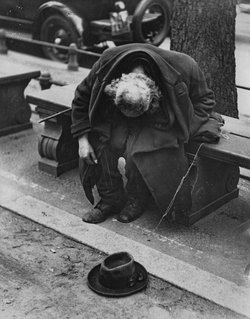 Eine Auseinandersetzung mit fotografischen Artikulationen eines proletarischen Selbst wird also mit Formen strategischer Aneignung zu rechnen haben. Die Brille, kann man sagen, schärfte den Blick. In Thormanns Bildern des Berliner Osthafens (Abb. 3) scheint das kompositionelle Schema des Neuen Sehens durch, dient aber der Anschaulichkeit des Arbeitsvorgangs. Der zugewandte Blick des Arbeiters rechts aber ist vielsagend: Er verrät Einverständnis und Mitwirkung beim Fotografieren, auf das Arbeiterfotografen an solchen Orten eher rechnen durften als ihre bürgerlichen Kollegen.[26] Dies gilt aber nicht in jedem Falle. Etwa bei den Prostituiertenbildern in „Berlin bei Nacht“[27]; erst recht aber für Richard Woikes verstörende Serie obdachloser Männer (Abb. 4), zusammengesackt auf Banken oder hilflos am Bordstein. Der politische Zweck solcher Bilder mag die Mittel rechtfertigen, doch wird deutlich, dass der politische Selbstvertretungsanspruch der Arbeiterfotografie konkrete sozialstrukturelle Grenzen überschritt. Wohl konnte man die Substrata des urbanen Lumpenproletariats als Opfer der bekämpften Wirtschaftsordnung begreifen, kaum aber als seinesgleichen. Walter Ballhause hat andernorts darüber berichtet: „Das Blut ist mir direkt ins Gesicht gestiegen, so hab ich mich geschämt“ [28], wenn jene, „die sich nicht gern zeigten, die Elenden“ ihn beim Fotografieren einmal entdeckten. Hier deckt sich das repräsentationspolitische Problem recht bündig mit dem der sozialreformerischen Dokumentarfotografie. Letztlich sind es solche Blickwechsel, Aneignungen und die mediale Agency, die das Problem des proletarischen Blicks so fruchtbar für ein komplexes Bild der fotografischen Moderne machen. Die allzu eingängige Metapher des Blicks birgt die Gefahr des Authentischen. Die wichtigste und schwierige Aufgabe heute ist es, sie in dieser Brüchigkeit ernstzunehmen.