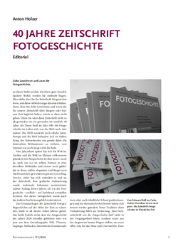 FOTOGESCHICHTE ist eine international renommierte Fachzeitschrift, die sich mit den Themen Fotografie und Gesellschaft beschäftigt. Sie begreift Fotografie als kulturelles, politisches, ästhetisches und soziales Phänomen. Und sie interessiert sich auch für das gesellschaftliche und ästhetische Umfeld fotografischer Bilder. FOTOGESCHICHTE sieht Fotografiegeschichte als Kultur- und Gesellschaftsgeschichte.