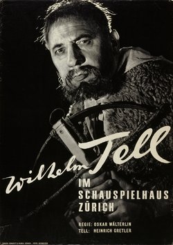 Zensierte Pressefotografien, aber auch inszenierte Porträtaufnahmen wirken als fotografische Bildikonen langfristig auf das kollektive Gedächtnis einer Gesellschaft ein und verfestigen deren ikonografische Bedeutungen. Für die Schweiz wurde der Einsatz von Fotografien als ikonografisches Propagandamittel einer theatralen „Geistigen Landesverteidigung“noch wenig erforscht.<link typo3>[5] Als Beispiel dafür sei hier das Theaterplakat „Wilhelm Tell“ angeführt (vgl. Abb.): In seiner Paraderolle als Schweizer Nationalheld richtet der Schauspieler Heinrich Gretler (1897–1977) seinen Blick stolz und unerschrocken auf den Betrachter. An einer Stelle in Schillers „Wilhelm Tell“ heisst es: „Knechtschaft wollt Ihr ihm [dem Volk] bereiten! Die Freiheit wollt Ihr aus dem letzten Schloss, das ihr noch auf der Erde blieb, verjagen. Das Volk versteht sich besser auf sein Glück. Kein Schein verführt sein sicheres Gefühl (...).“<link typo3>[6] Gretler als Wilhelm Tell, der für die Freiheit und das Glück des Schweizer „Volkes“ kämpfte, kann als fotografische Ikone einer Glückskultur gedeutet werden, welche 1939 im Sinne der „Geistigen Landesverteidigung“ am Schauspielhaus Zürich theatral inszeniert wurde. Im Gegensatz dazu wurde „Tell“ von 1933 bis 1941 in Berlin, u.a. von Carl Ludwig Achaz (1889-1958) am Deutschen Theater, als „nationalsozialistische Führerfigur“ in Szene gesetzt. <link typo3>[7].
