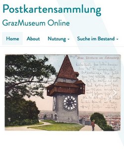 Die gängige Praxis, nur die Bildseiten digital zur Verfügung zu stellen, ist aus Sicht der Forschung daher als massive Beschneidung des Quellenwerts von Postkarten einzuschätzen. Kommt es hier jedoch zu einer Neuorientierung, so könnte historische Forschung künftig auch entscheidend von Digitalisierungsprojekten profitieren. Denn umgekehrt sind viele Forschungsfragen im Zusammenhang der physischen Sammlungen nicht zu beantworten. Nicht von ungefähr gibt es noch so gut wie keine Arbeiten zu Kontexten der Produktion von Postkarten, da Hersteller, Verlage und deren Sortimente ausgehend von der topografischen Ordnungslogik der Sammlungen kaum beforschbar sind. Auch lässt sich innerhalb topografisch geordneter Sammlungen nicht nach Themen suchen, was viele Fragestellungen von vornherein ausschließt. Die Onlinebereitstellung bietet gewissermaßen die Chance, alte Ordnungssysteme durch neue zu ergänzen und verlorene Zusammenhänge wiederherzustellen.[5] Unabhängig davon, welcher Art die Forschungsfragen sein werden, die in Zukunft an Postkartenbestände gestellt werden – eine Frage, die sich natürlich in keiner Weise abschätzen lässt[6] – , ging es daher in der Konzeption der Seite am GrazMuseum darum, die unterschiedlichen Ebenen des Objekts Postkarte möglichst zugänglich zu machen.