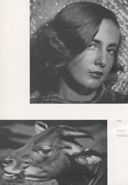 Die Präsentation schließt mit vier nur auf den ersten Blick konventionellen Genre-Fotografien, die offensichtlich das Portfolio Tilly Voigts umreißen sollen: das weibliche Porträt, das mit Licht- und Schatteneffekten, flirrendem Hintergrund, sowie mit Mustern und Texturen arbeitet; die Tierfotografie, die altmeisterlich anmutet, wie die Weichzeichnung eines Bromöldrucks, aber deutlich modern wirkt in der Wahl des Bildausschnittes; und die Lebensmittelfotografie als Erneuerung und Aktualisierung des malerischen Stilllebens. Zu einer Zeit, als „Frische“ noch keine werbewirksame Idee der Nahrungsmittelindustrie oder des Einzelhandels war und der Hinweis „Die neue Ernte ist da!“ sich auf das Gemüse der Saison bezog, das ab sofort in Konserven erhältlich war, fotografierte Tilly Voigt frisches Gemüse vom Markt: appetitlich glänzende Tomaten auf einem Teller, einen Bund Radieschen mit ihren feinen Wurzeln und Blättern und einen Weidenkorb, gefüllt mit makellos weißem Spargel – den Einkauf an einem Sommertag.