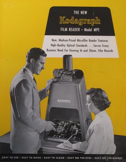Wie bereits Paul Otlet, der Gründer des Brüsselers Office International de Bibliographie, in seinem erstmals 1906 erschienenen (und mehrfach aktualisierten) Essay „Sur une forme nouvelle du livre. Le livre microphotographique“[7] (in Ko-Autorschaft mit dem Physiker und Entrepreneur Robert Goldschmidt) postulierte, versprach der Mikrofilm die Reduzierung von Produktionskosten und Speicherraum und die Möglichkeit mehr oder bislang unzugängliche Bild-und Textdokumente verfügbar zu machen. Neben der Ausweitung der Kopiertätigkeit für wissenschaftliche Zwecke, welche die externe Leihe und Fernleihe ersetzen sollte, bot sich der Mikrofilm zudem zur Vervielfältigung von Bibliothekskatalogen und Verzeichnissen an. Im Vergleich zu manuellen Abschreibetechniken und frühen Formen der Fotokopie (z.B. Photostat), schaffte die Datenspeicherung auf leichten und flexiblen 16mm und 35mm-Filmrollen die Aussicht auf einen zukunftsträchtigen Markt und deutete auf einen weiteren Schritt in der erhofften „Demokratisierung“ des Wissens hin.